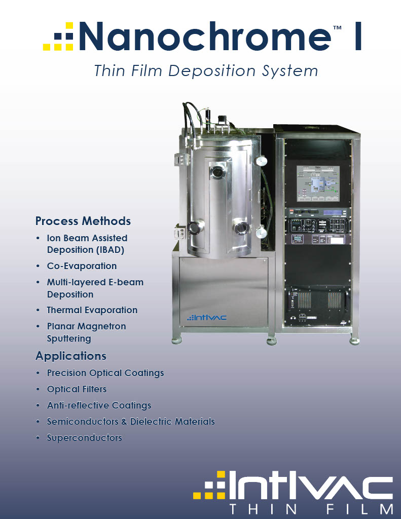Intlvac Thin Film 的 Nanochrome™ I 是一款高性能科研/试生产用物理气相沉积 (PVD) 系统,专为灵活性、精度与易用性而设计。该系统占地小、运行成本低,并具备多工艺兼容能力,是在广泛先进材料上开发薄膜工艺的理想解决方案。