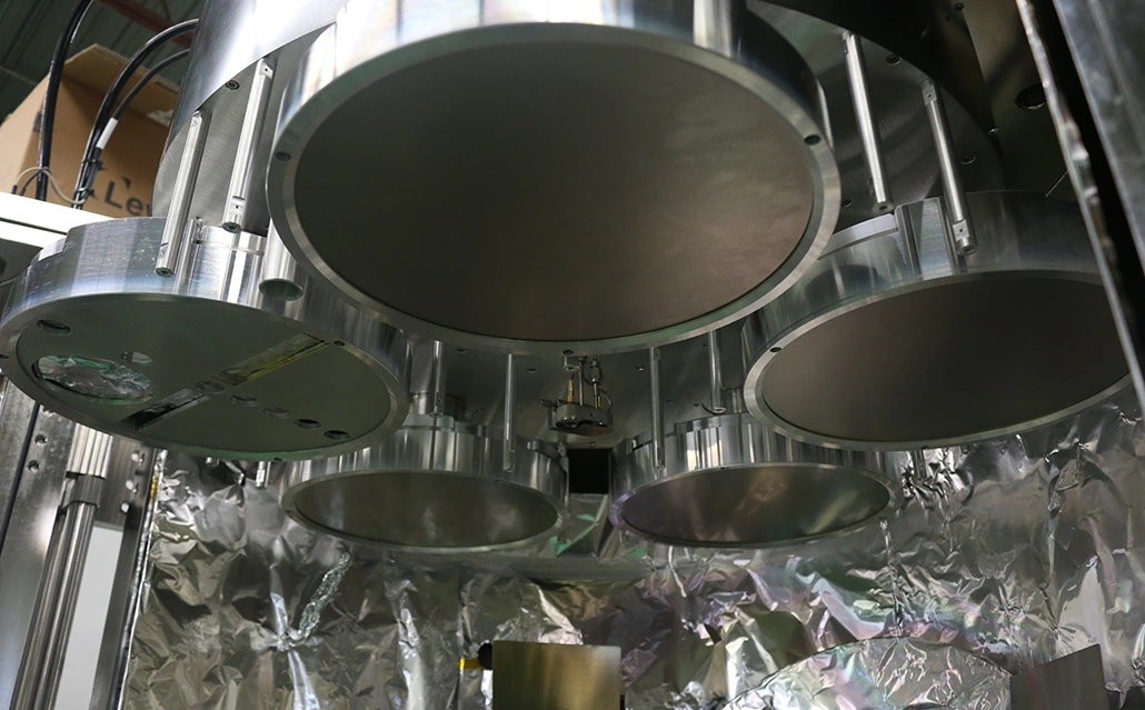 系统配备带有双轴旋转功能的行星转台及五个 12 英寸基片托架,实现仅 2% 的基线膜厚均匀性。每个行星托架可容纳一片 12 英寸基片,或多片较小基片,在每个工艺循环中最大化镀膜产能。